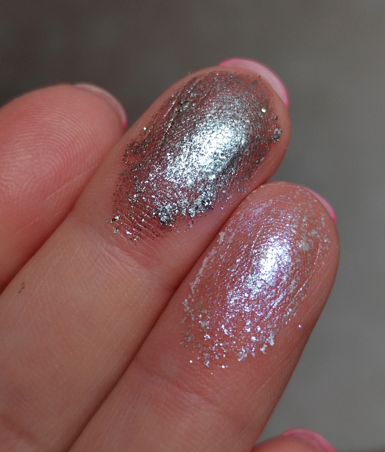 Первый оттенок, расположенный в палетке слева — имеет холодный цвет металла, с включением зелено-синих блесточек.