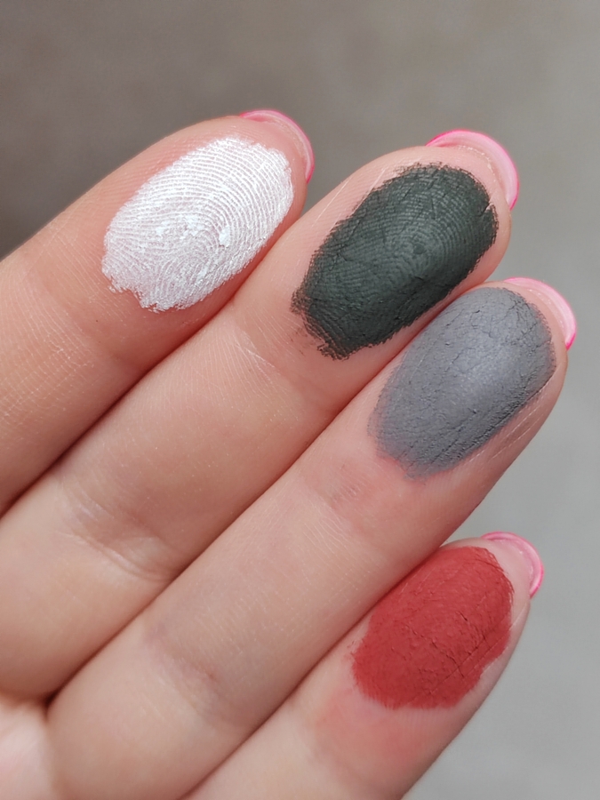 Оба оттенка имеют хлопьевидную текстуру, переносятся пальцем без осыпаний.