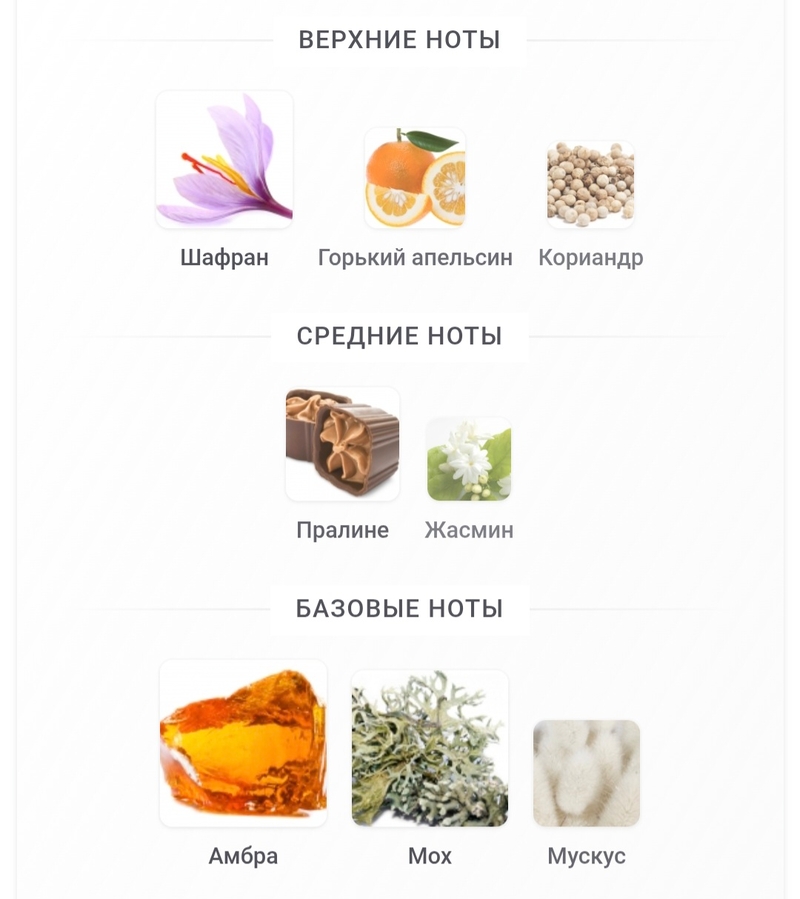 Верхние ноты: шафран, горький апельсин и кориандр.
