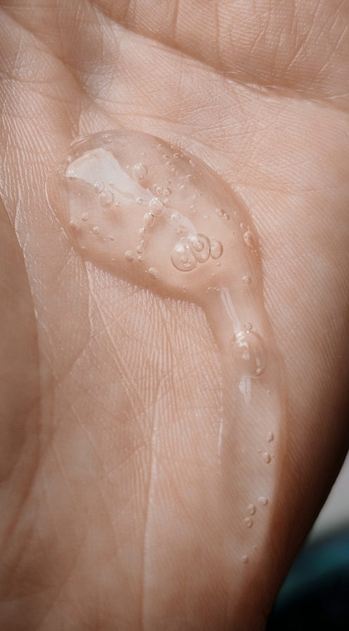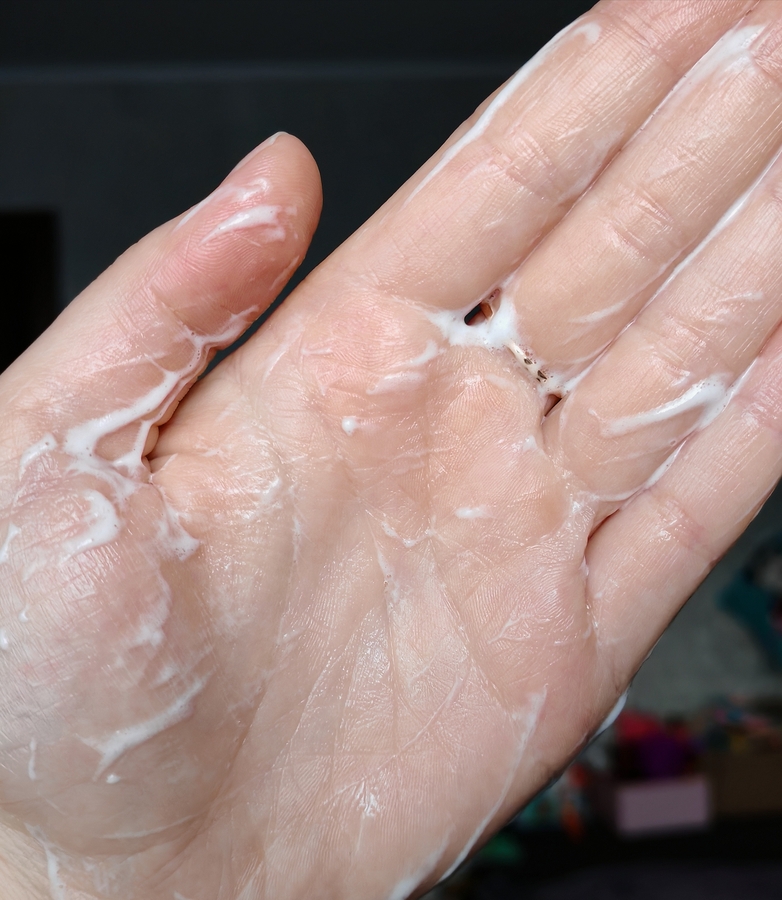Гель легко распределяется и скользит по коже, немного пенится.