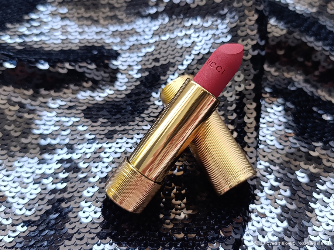 Всем привет! Казалось бы, сейчас в масс-маркет можно найти много хорошей декоративной косметики, но… Когда у меня сломались две темно-красные Givenchy, я не смогла заменить их L'Oreal и Essence, не те ощущения, не такое покрытие. А вот Gucci Rouge A Levres Mat в оттенке 504, Myra Crimson я довольна на 100% даже несмотря на некоторые недочёты.