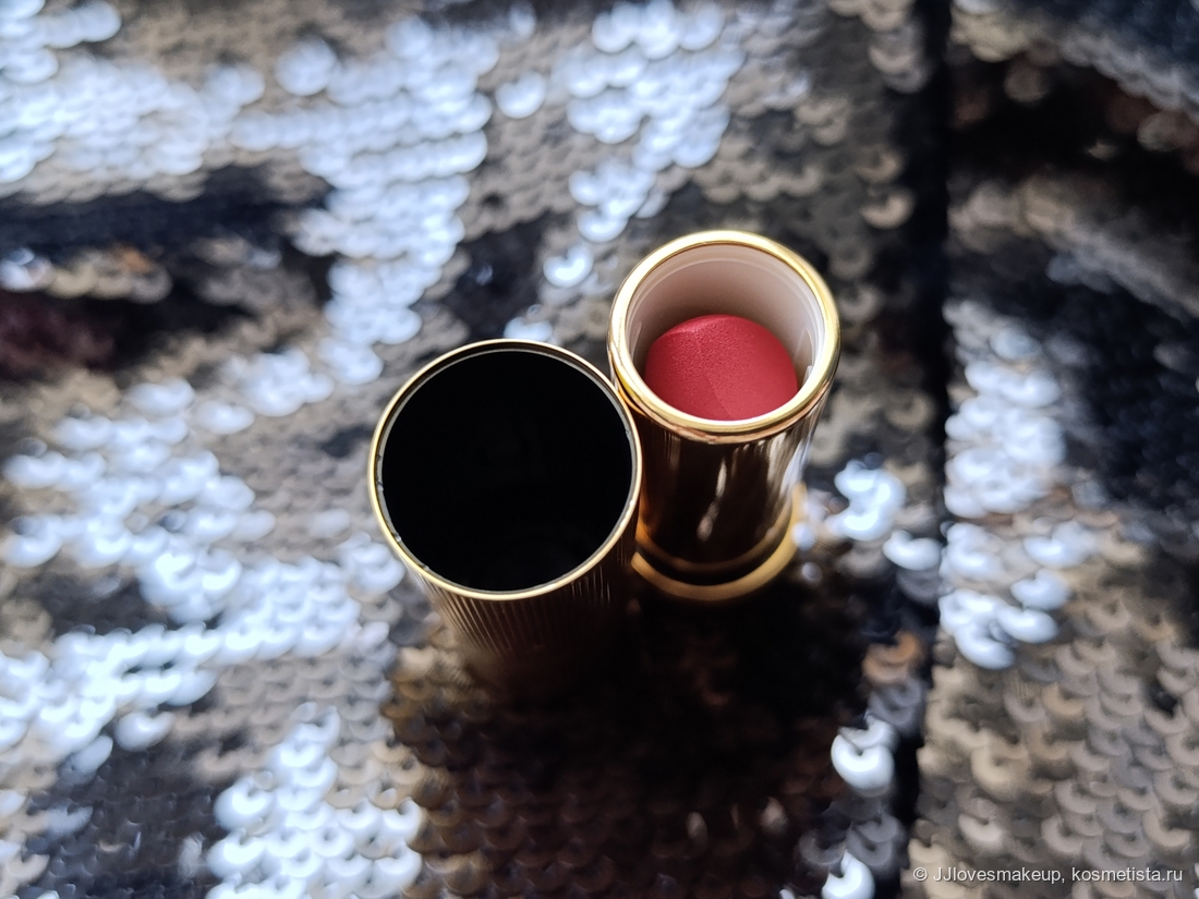 Консистенция: помада имеет текстуру ближе к классической, но не классическую. Она немного пудровая, немного жирнее, чем обычные матовые, не сухая, не песочная, не гелевая… Что-то среднее между матовой нового поколения и сатиновой. Покрытие тонкое, невесомое, очень ровное. Губы не сушит, не ощущается в процессе носки, не растекается, не двигается на губах, в полоску не скатывается.