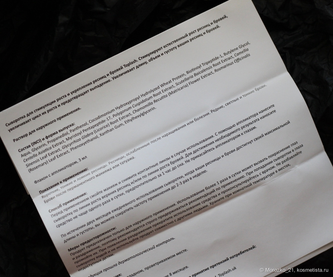 До этой сыворотки я использовала тоже достаточно известную растишку X-Lash. Результат от неё тоже мне очень нравился, но после 3 флакона я поняла, что она перестала работать на мне и решила заменить её на Toplash, о которой я слышала и читала много хороших отзывов, в том числе и здесь