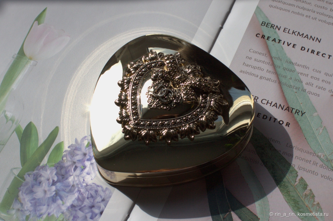 Футляр у теней в виде золотого зеркального сердца-треугольника со сглаженными углами. Золотой, с большим вензелем. Отлично собирает все отпечатки.