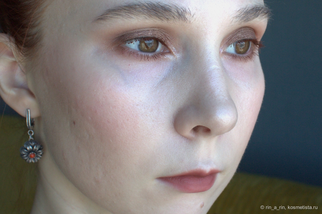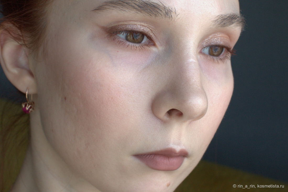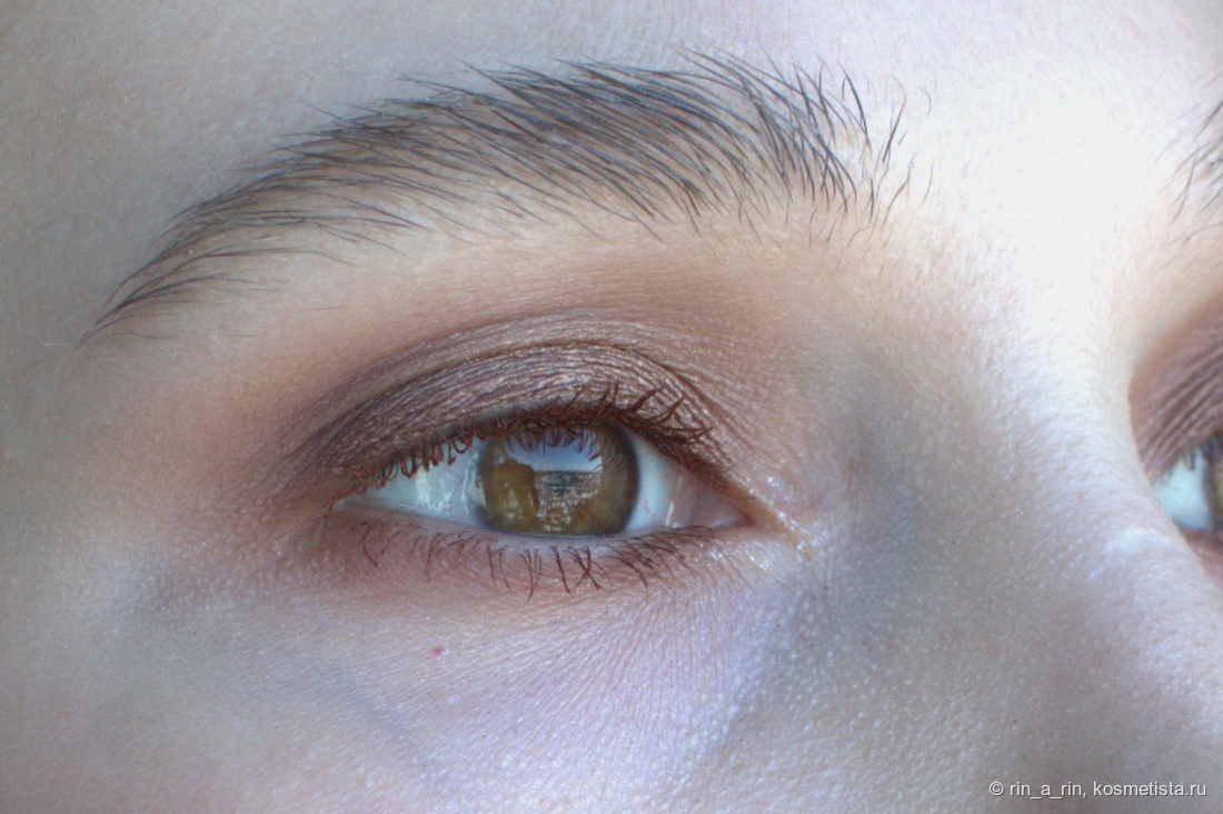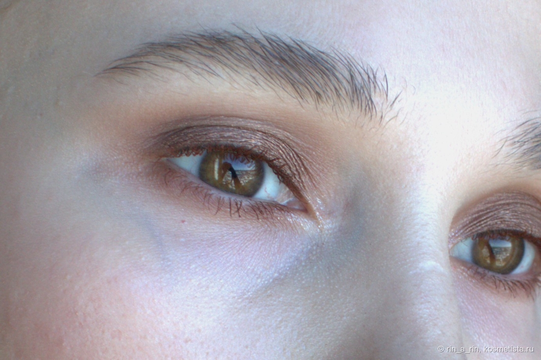 Сияющие оттенки (два сатина и спаркл) тоже достаточно беспроблемные: веки не жуют, в складку века не скатываются, не осыпаются при носке. Осыпаться при нанесении на веко может спаркл, но и то не критично. Эти оттенки я наношу на веко пальцем и растушевываю кистью их границы.