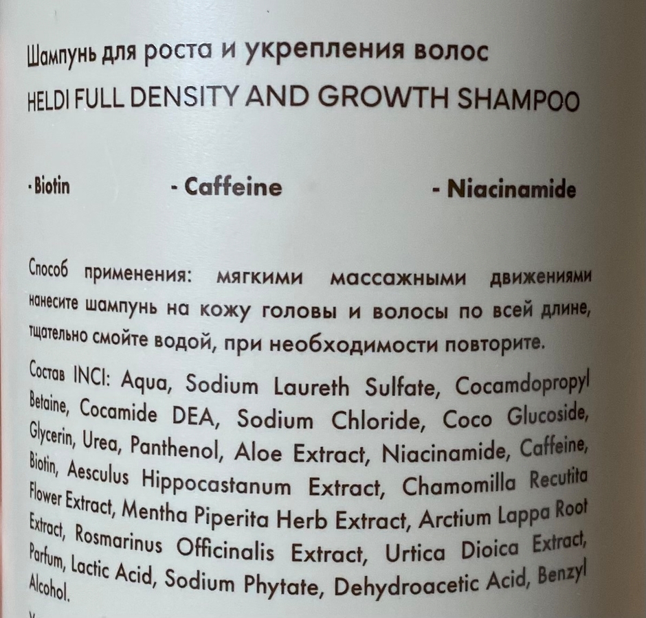 Это сульфатный шампунь, смягчённый мягкими ПАВ, в составе очень много увлажняющих экстрактов и ингредиентов, включая биотин, алоэ, молочную кислоту и мочевину. Есть в составе ниацинамид и кофеин, розмарин и мята, которые улучшают кровообращение.