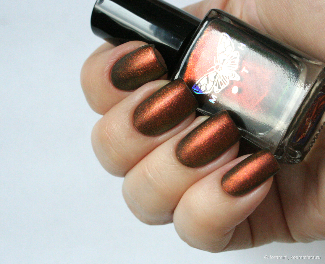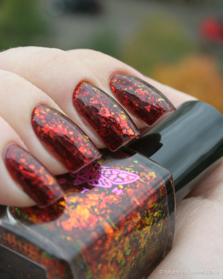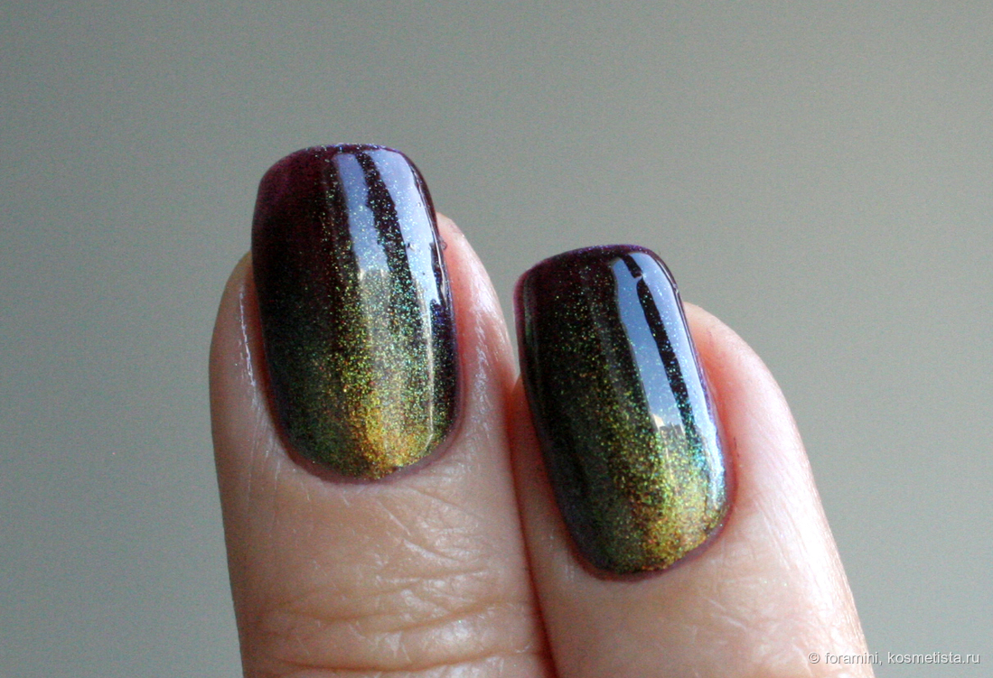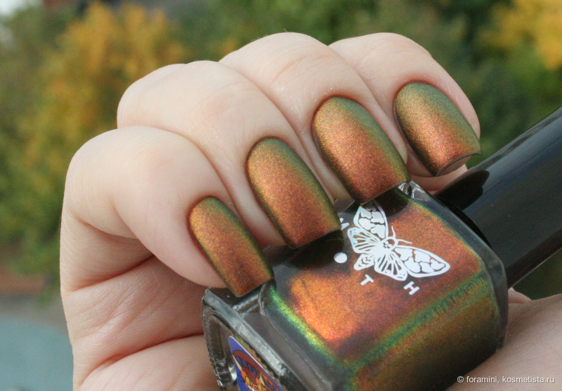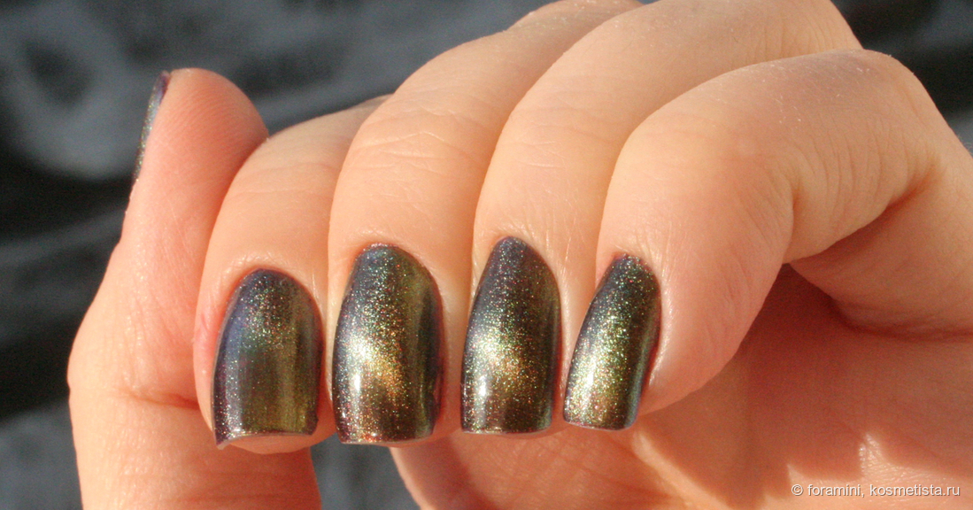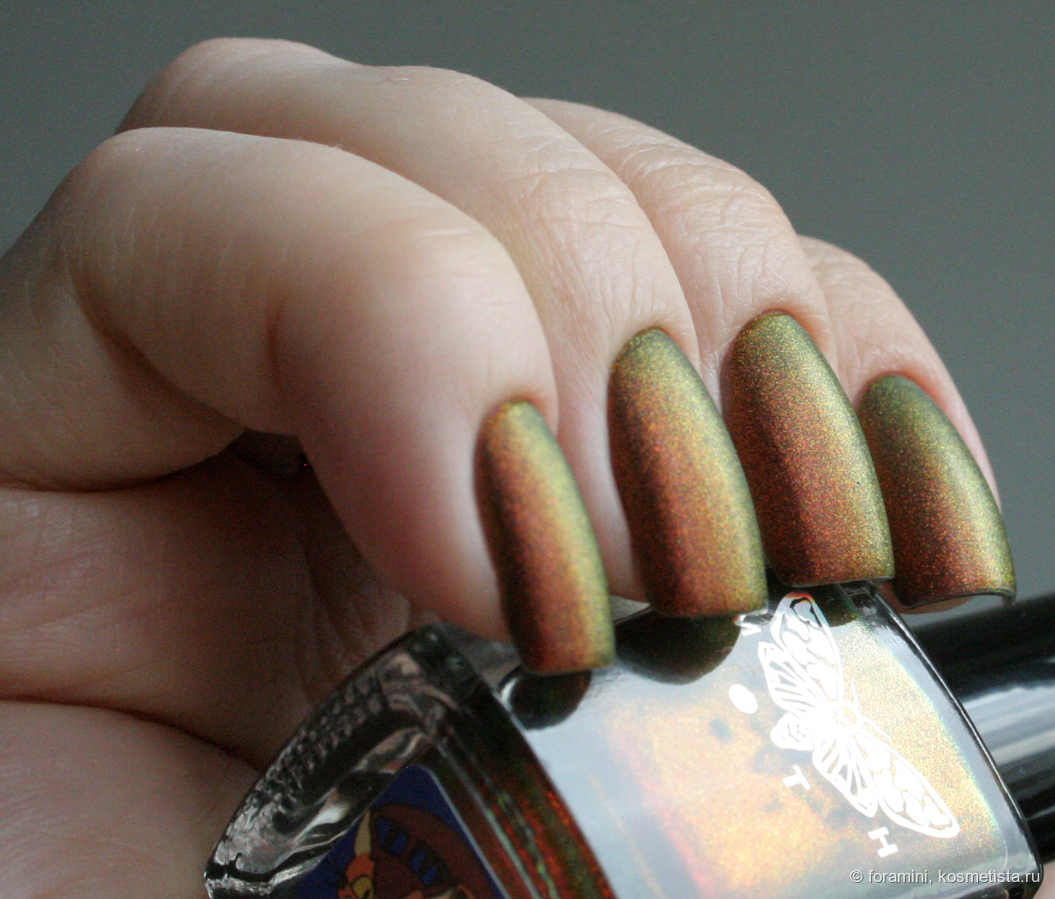 Любимчик на осень. Матовый красно-желто-зеленый мультихромный шиммер в слегка подкрашенной черным базе.