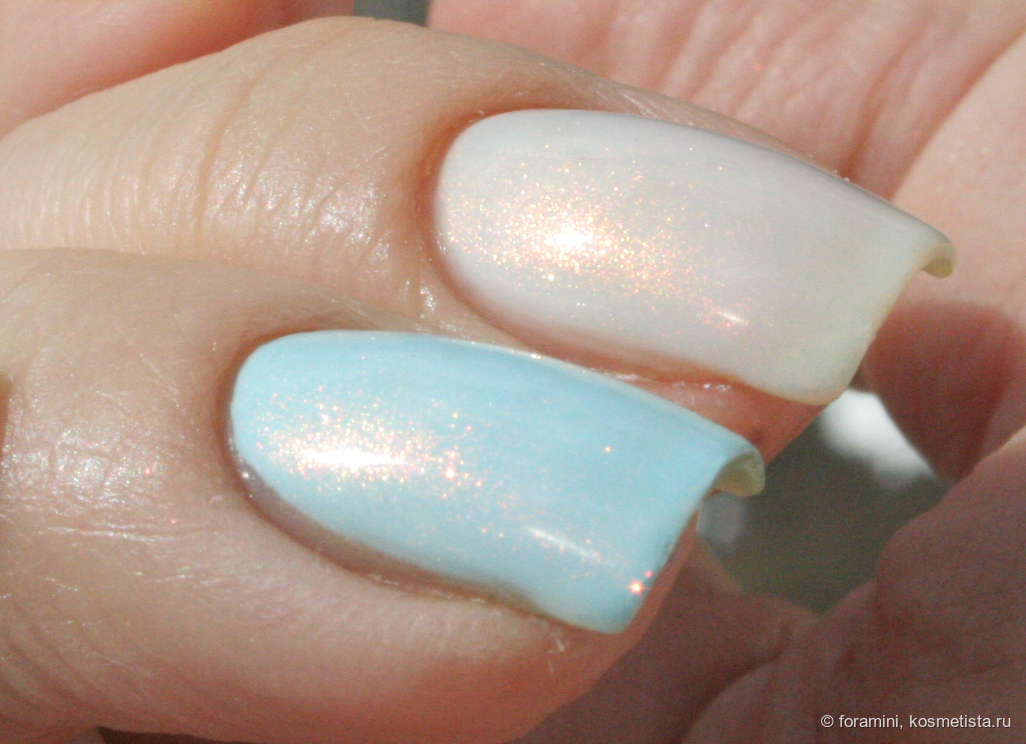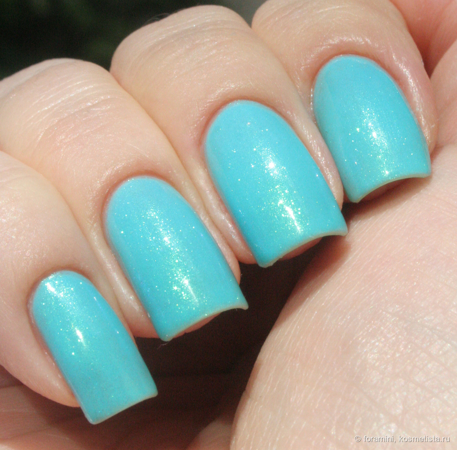 Светло-лазурный лак с бирюзово-голубым шиммером. На лето (и море) просто замечательный оттенок!