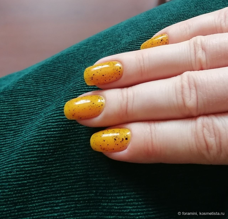 Янтарь на ногтях. Желтое желе с металлизированными черными хлопьями. Красавец!