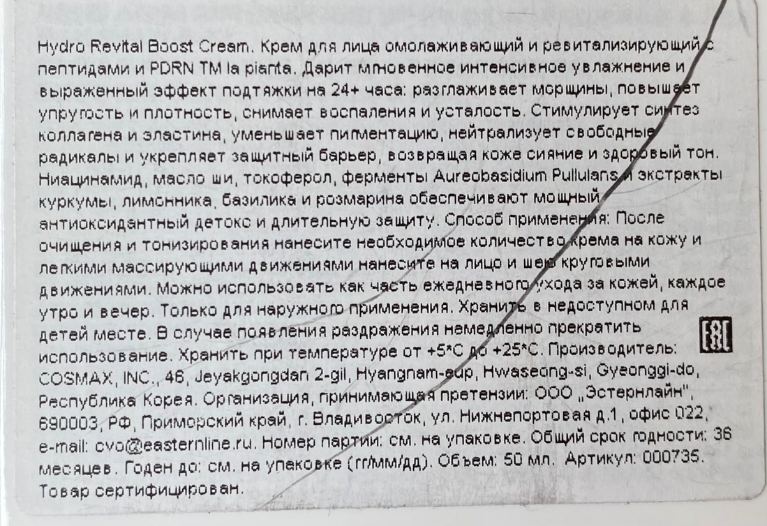la pianta Крем для лица омолаживающий Hydro Revital Boost Cream