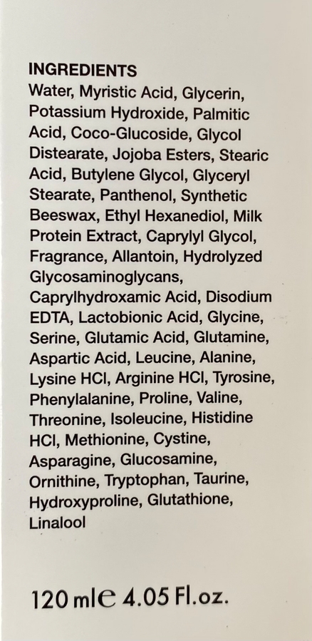 Эта пенка на классической базе из жирных кислот с щелочью, поэтому оно хорошо справляется с себумом, загрязнениями и spf, которую смягчают Coco-Glucoside и эмоленты вроде glyceryl stearate, jojoba esters и synthetic beeswax, которые уменьшают потенциальную сухость после умывания. Много увлажняющих ингредиентов и большой комплекс аминокислот, который имитирует натуральный увлажняющий фактор кожи и поддерживает её барьер. Есть в составе и Lactobionic Acid (PHA), которая оказывает лёгкое обновление, увлажнение и антиоксидантный эффект.