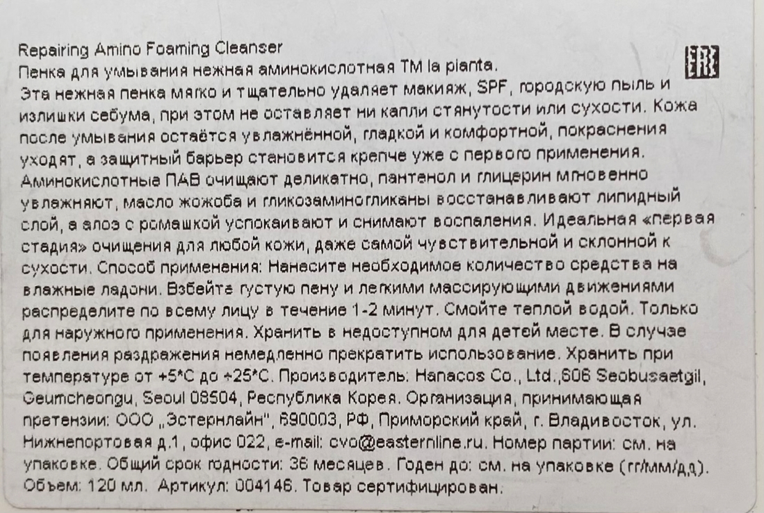 la pianta Пенка для умывания нежная аминокислотная Repairing Amino Foaming Cleanser