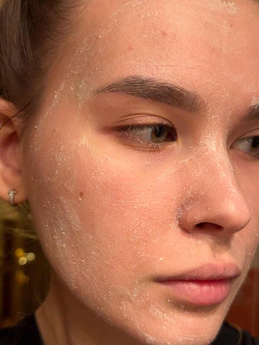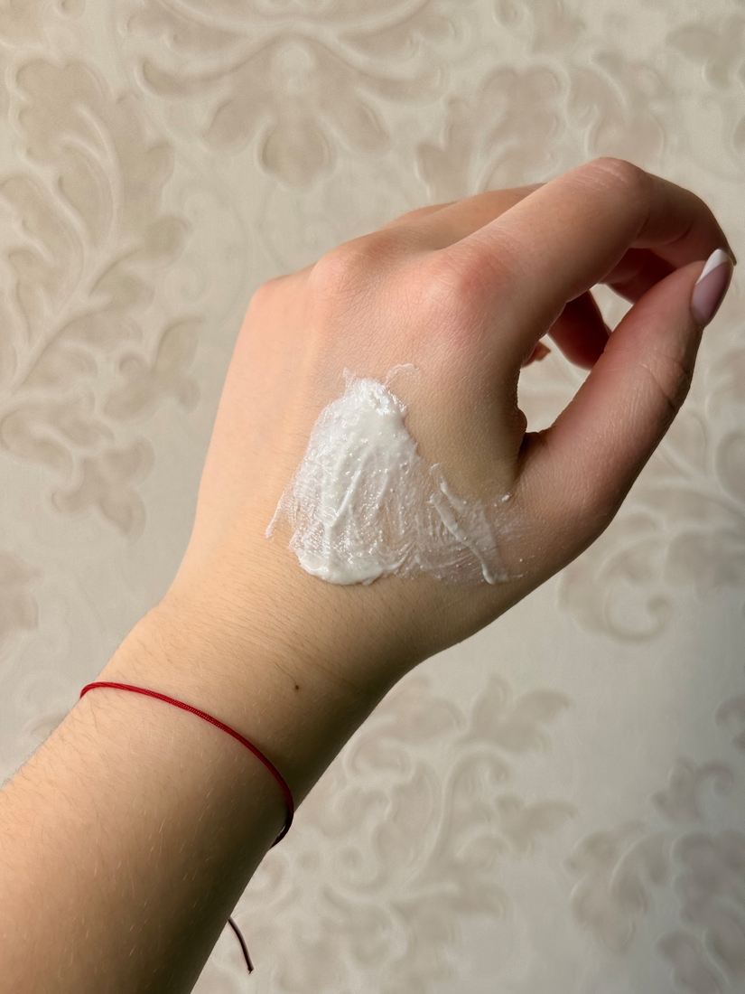 Текстура кремовая, чуть напоминает грязевые маски, но с небольшими скрабирующими частичками. Поэтому для меня это скорее мягкий скраб, а не пилинг. Помимо отшелушивающих частиц в составе есть грязь Мёртвого моря, благодаря которой текстура именно такая кремовая. На лицо скраб наносится хорошо, я это делаю прямо пальчиками. Скрабирующие частички кожу не царапают.