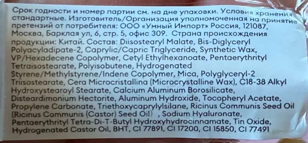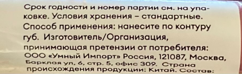 Помада произведена в Китае. Срок годности после вскрытия 12 месяцев.