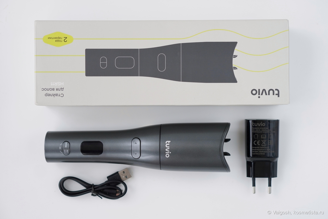 Комплектация скромная, но достаточная: коробка, зарядное устройство, сам стайлер и инструкция, которая у меня, конечно, тоже была, но я вам её не покажу — не из вредности, а потому, что я и сама не знаю, куда её подевала.