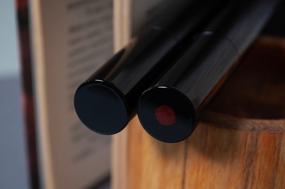 Внутри минималистичные черные тубы, абсолютно одинаковые во всем, кроме наклейки на жопке — на ней прописаны название оттенков, срок годности и номер партии.