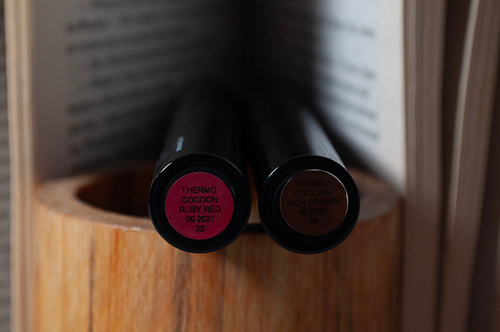 Раньше у меня не было проблем с тушами — возможно, потому что мне нравился естественный эффект «ненакрашенных» ресниц. Одно время я даже красила ресницы тушью для бровей, потому что там были хорошие коричневые оттенки, да и наносились они тоньше. Но в какой-то момент я полюбила эффект драмы и все, теперь большая часть тушей с моими ресницами, а скорее даже с комбинированной кожей, дружить отказывается. В лучшем случае это небольшие осыпания, в худшем — заметные черные следы под глазами и под бровями. Я все равно пробую разные продукты, потому что я дуреха любопытная, и очень радуюсь, когда нахожу что-то, что хорошо на мне держится. И Termo Cocoon Mascara от Climt Cosmetics в оттенках Rich Brown и Ruby Red отлично отвечают моим требованиям.