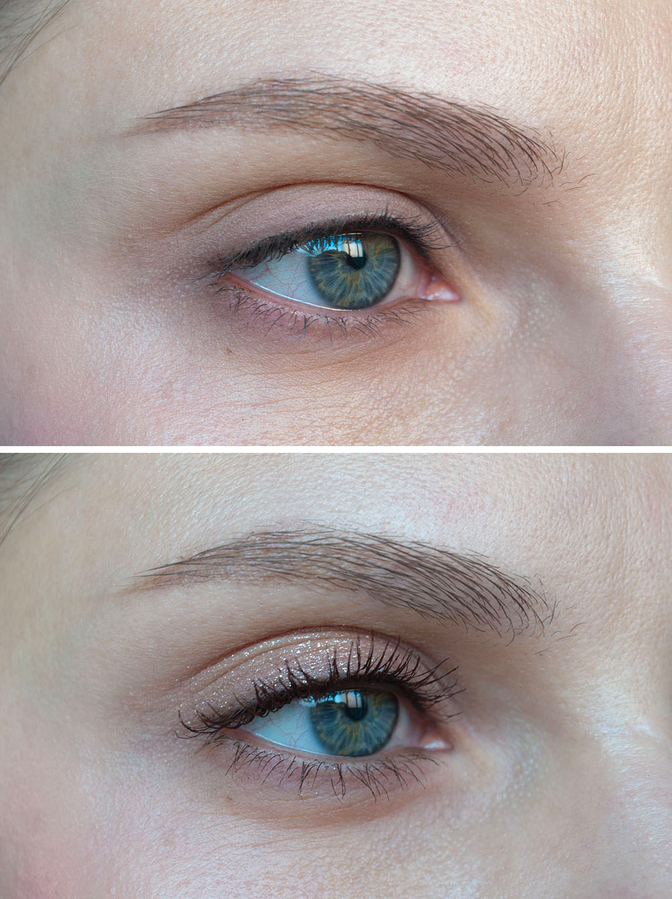 В коричневом оттенке тушь чуть более кроющая, для нее мне хватает одного хорошо прокрашенного слоя. На фото ниже керлер я не использовала, чтобы показать как тушь работает сама по себе.