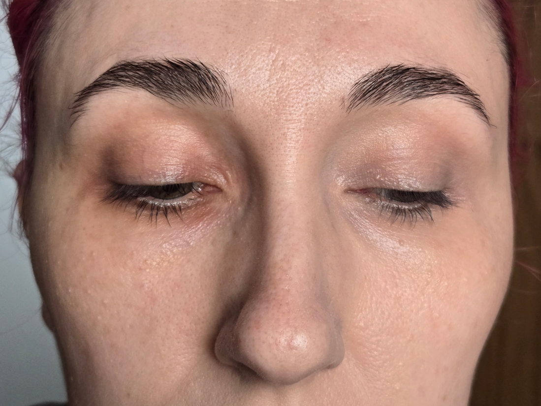 В целом кожа выглядит неплохо, но эта пудра слишком сухая для этого тональника, потому что под правым глазом подчеркивает морщинистую сетку. Но плюс этого дуэта: остаётся сияние изнутри.