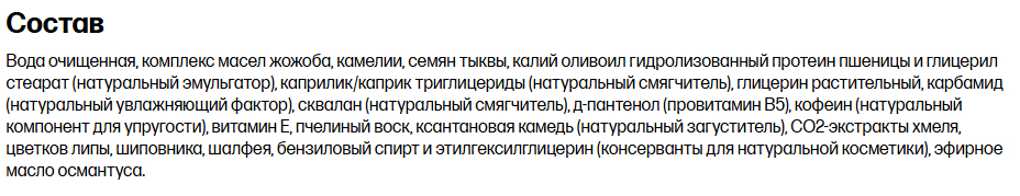 По текстуре крем напоминает баттер. Он нежный, но вместе с тем маслянистый. По коже распределяется легко, без полос.