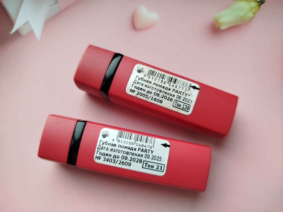 Обе помады имеют одинаковый дизайн. Футляр внешне приятный, матовая текстура, цвет правда, ярковат. Люблю более сдержанную цветовую гамму. На боковой части колпачка надпись Belor Design, которая не сразу бросается в глаза.