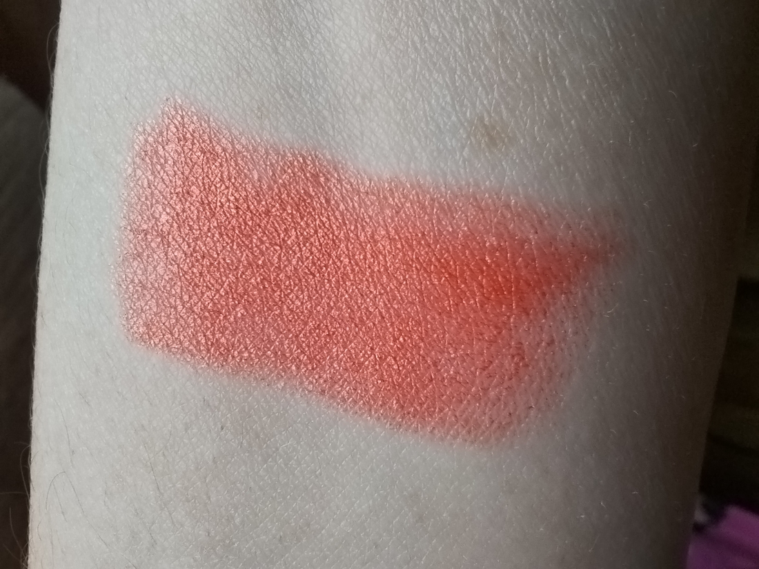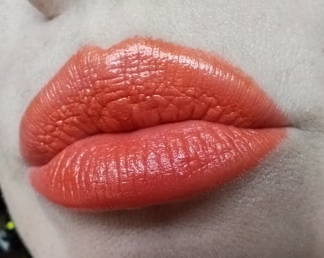 Захотелось взять для разнообразия на лето. Яркий и вызывающий морковный оттенок с мелким шиммером.