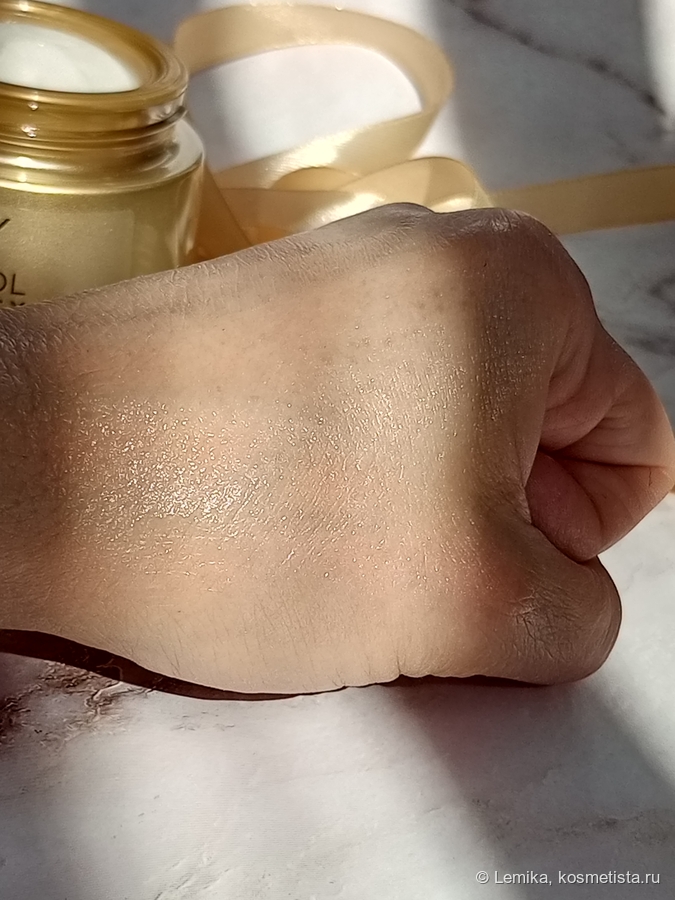 Средство очень легко распределяется на коже, на несколько минут оставляя небольшой блеск.