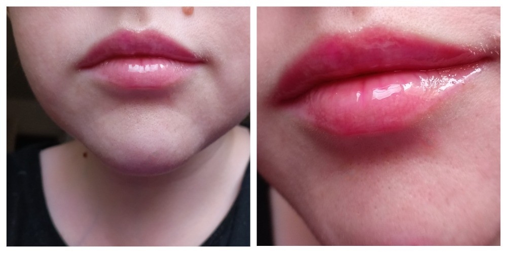 На губах масло лежит хорошо, не растекается, но важно не переборщить с его количеством. По текстуре это и правда скорее смесь геля и масла. Оно густое, но не липкое и не тяжелое. Достаточно быстро впитывается в губы. Вполне ощутимо за ними ухаживает. Может подлечить небольшие шелушения. Для декоративного средства просто отлично.