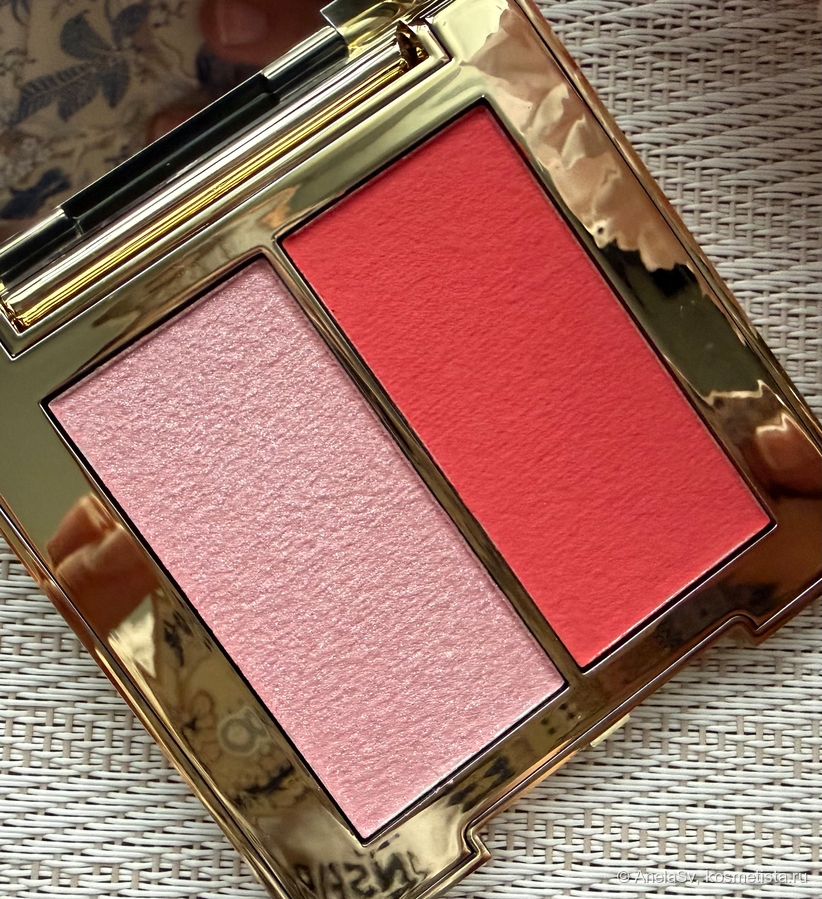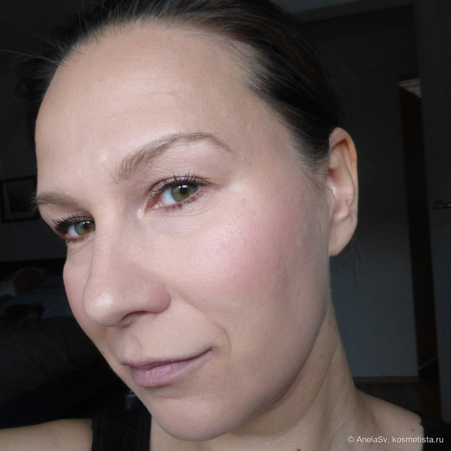 Зато румяна — настоящая находка. Оттенок сочный, малиновый, отлично освежает лицо. Текстура интересная — что-то среднее между кремом и пудрой. Наносятся легко, без усилий растушёвываются, не «съедают» тон и позволяют регулировать интенсивность. При этом не дают жирного блеска, хорошо фиксируются и держатся весь день, практически не теряя яркости.