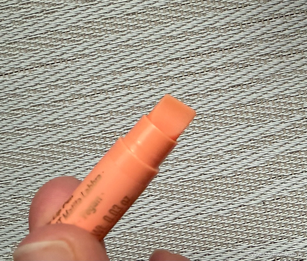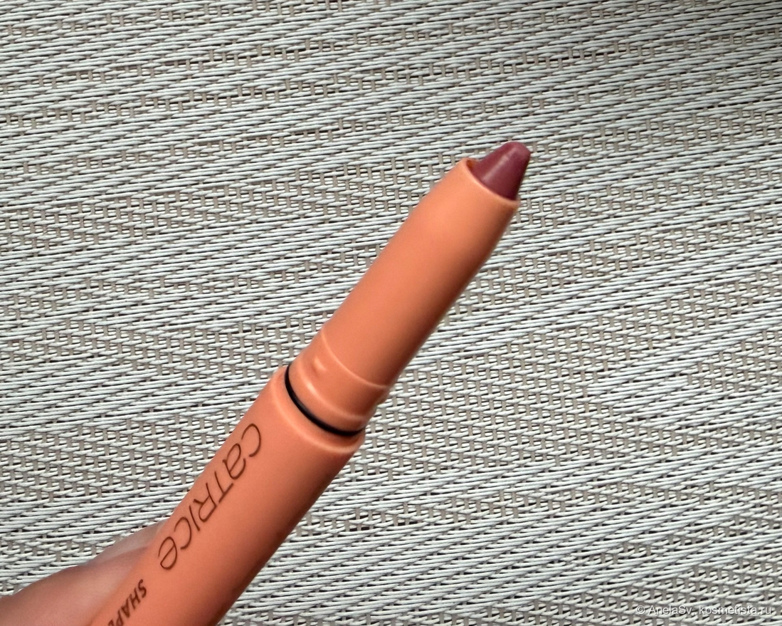 Я выбрала оттенок 02 — прохладный розовато-сливовый. Оттенок 01 более темный, меня не заинтересовал. У карандаша довольно яркая отдушка, которая со временем уходит и не ощущается. У него очень мягкая приятная текстура, он легко растушевывается как пальцем, так и наконечником.