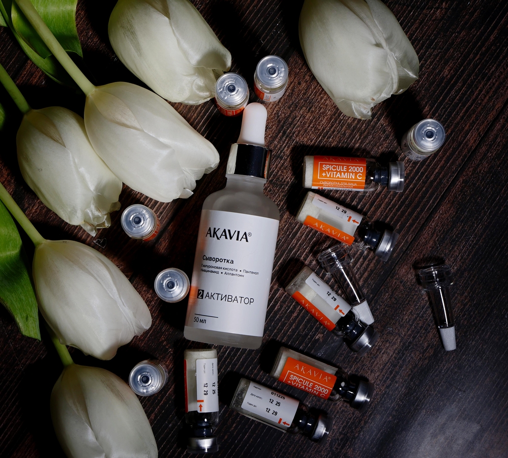 Вскрывать ампулы не сложно — если действовать по стрелочкам, то это получается легко и непринуждённо уже с первого раза (я на сыворотке для волос уже научилась). Наполняем, оставляем немного постоять (пару минут), встряхиваем — получаем готовый концентрат. Дальше я наношу его на руку и потом на лицо. Под пальцами чётко ощущается покалывание, а в первые разы и пощипывания. Вот они микроиглы. Впитывается этот коктейль довольно быстро — я наношу поверх крем, жду несколько минут, пока он впитается и ложусь спать.