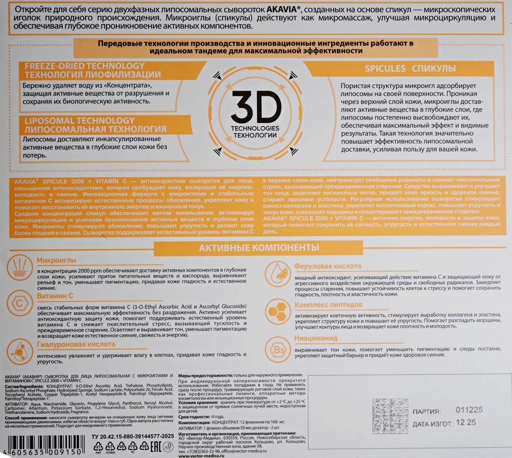 Объём: 12 ампул с сухим веществом, 50 мл сыворотки-активатора.