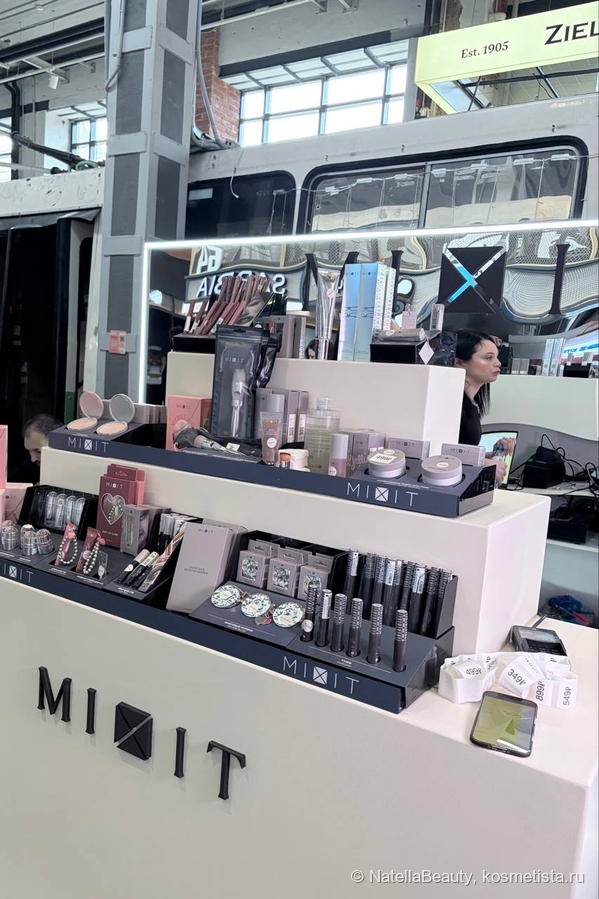 Начну по порядку. Прям у входа нас ждал российский бренд Mixit с их линейкой макияжа и колесом фортуны. За подписку любой участник выставки мог покрутить колесо и выиграть какое-то средство из ассортимента бренда. Тот редкий случай, когда очередь в этот корнер не стояла от метро.