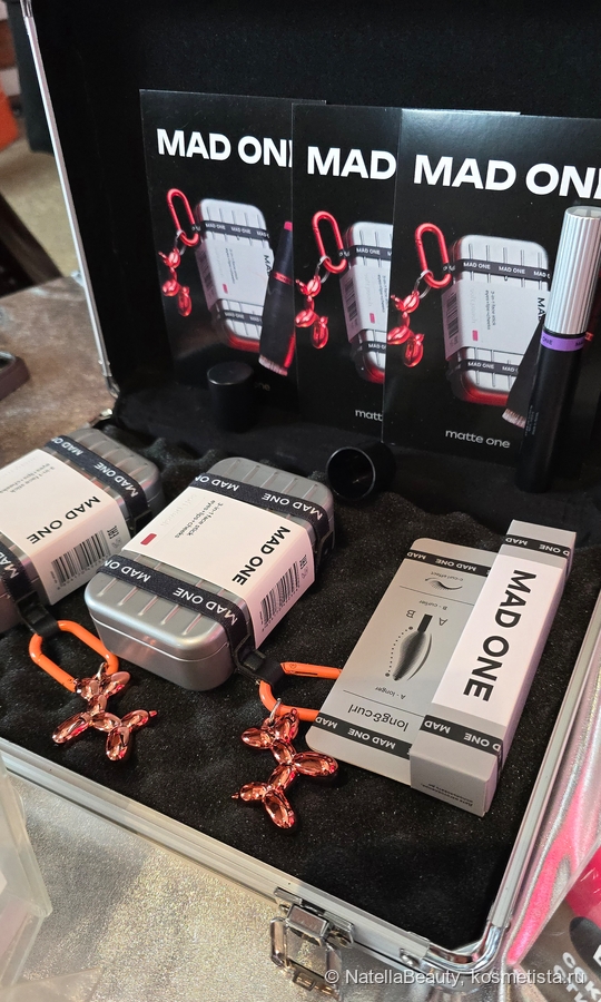 Следующий интересный бренд, который вышел совсем недавно — Mad One. Тоже российский бренд с производством в Корее. Пока продуктов в линейке совсем мало: два стика румян в персиковом и розовом оттенках, термо тушь с интересной щеточкой ввиде крыла. Самое интересное, что стики упакованы в металлические кейсы-чемоданы с обвесом ввиде собачки. Выглядит это великолепно и качественно. Производитель заявляет, что этим стиком можно сделать практически полный макияж (щечки, губы и тени). Кроме того, стик оснащен кистью, которая легко снимается и ее можно помыть.