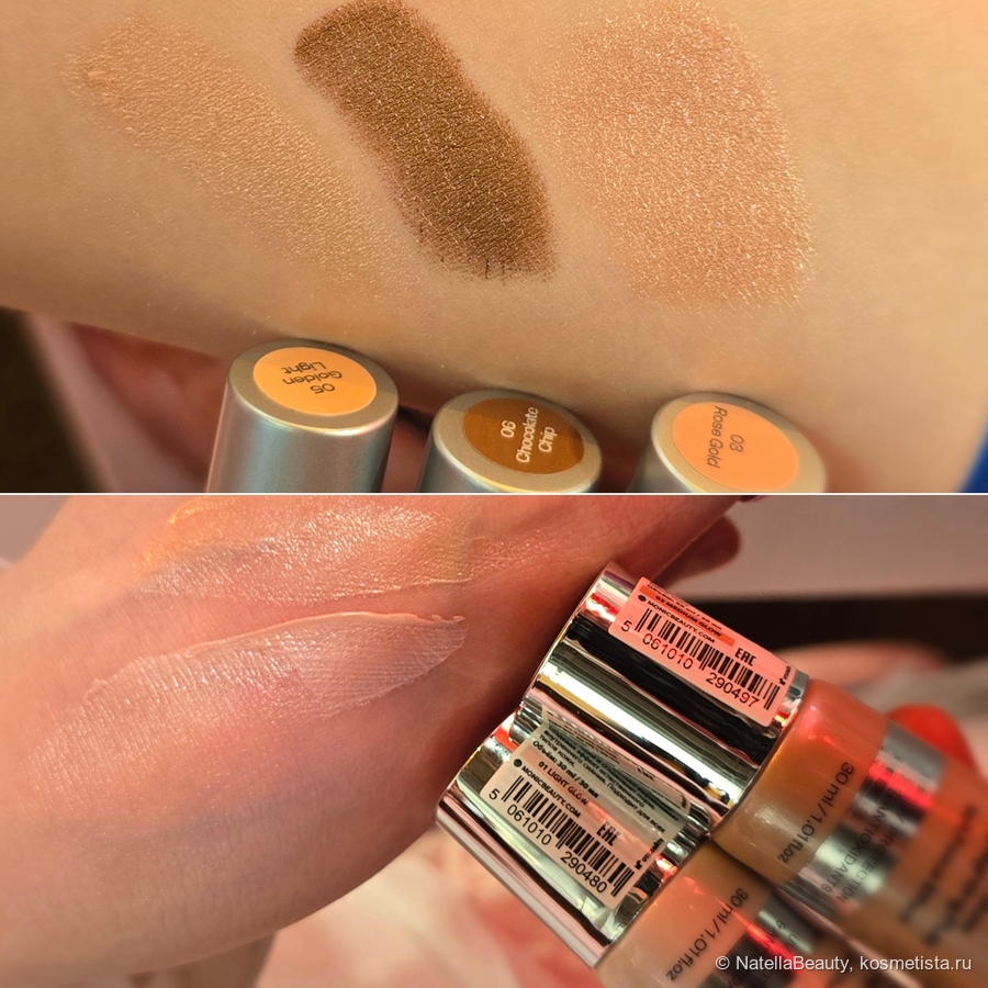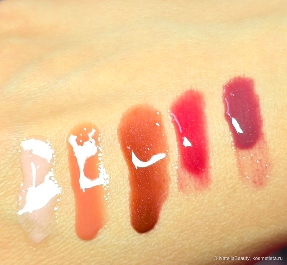Два варианта термотуши и пять оттенков блеска для губ. Блески для губ внешне напомнили Clarins, такие же спонжики-аппликаторы. Оттенки очень красивые, трендовые.