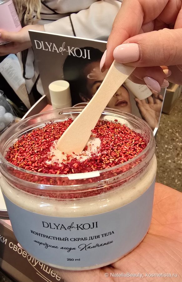 Мою душеньку больше всего заинтересновал контрастный скраб для тела с ягодным ароматом. Он сам по себе выглядит очень красиво, и еще создает одновременно разогревающий и охлаждающий эффект. Очень интересно попробовать!