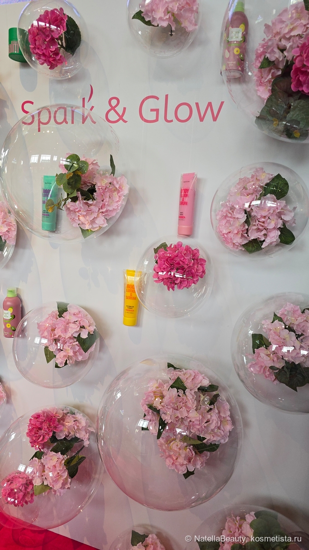Очень красивый бренд и потрясающий весенний стенд был у российского бренда Spark & Glow. С брендом я не знакома, но мое внимание привлекло очень красивое оформление. Производство находится в Китае, на различных заводах, которые специализируются на конкретном средстве.