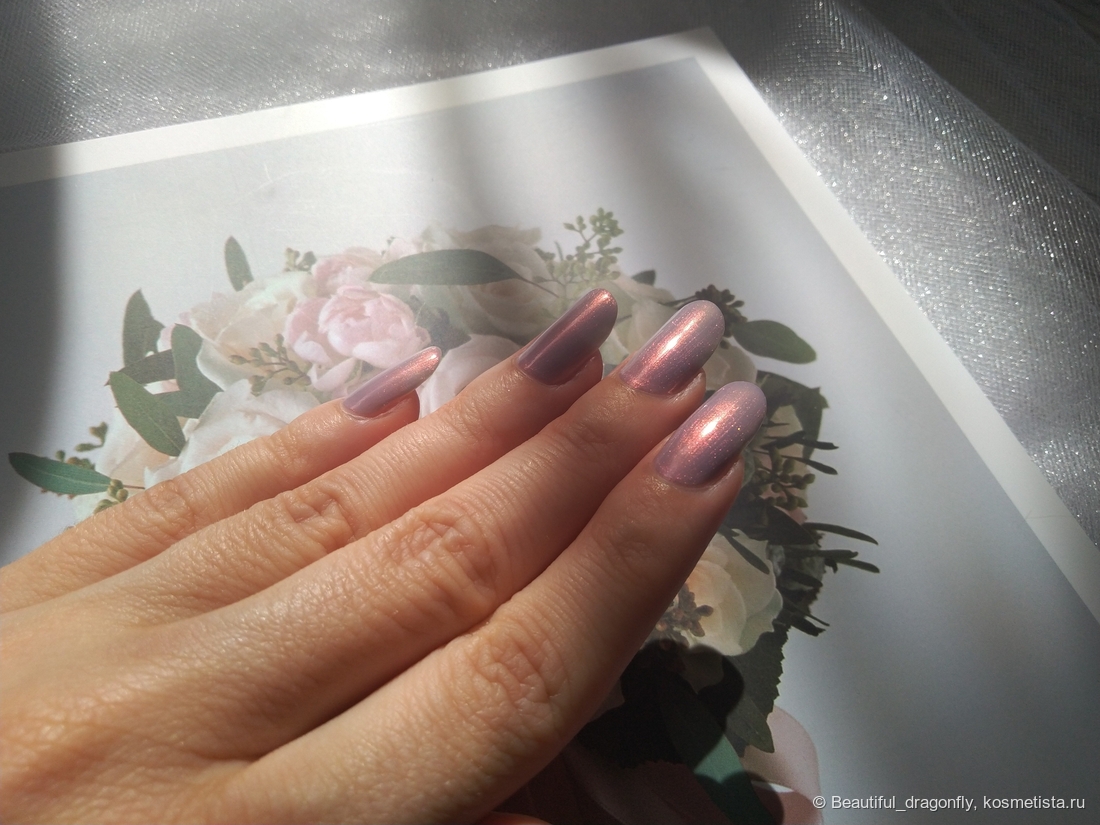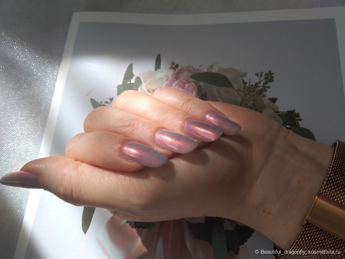 Данный оттенок запал мне в душу ещё на промофото на сайте бренда и я рада, что и в действительности он оказался таким же прекрасным. Я уже признавалась в своей любви к нюдово-розовым оттенкам (это ещё со времён жёсткого дресс-кода записано на подкорке), но сейчас люблю не просто нюд, а вот такой с изюминкой, который хочется рассматривать и рассматривать.