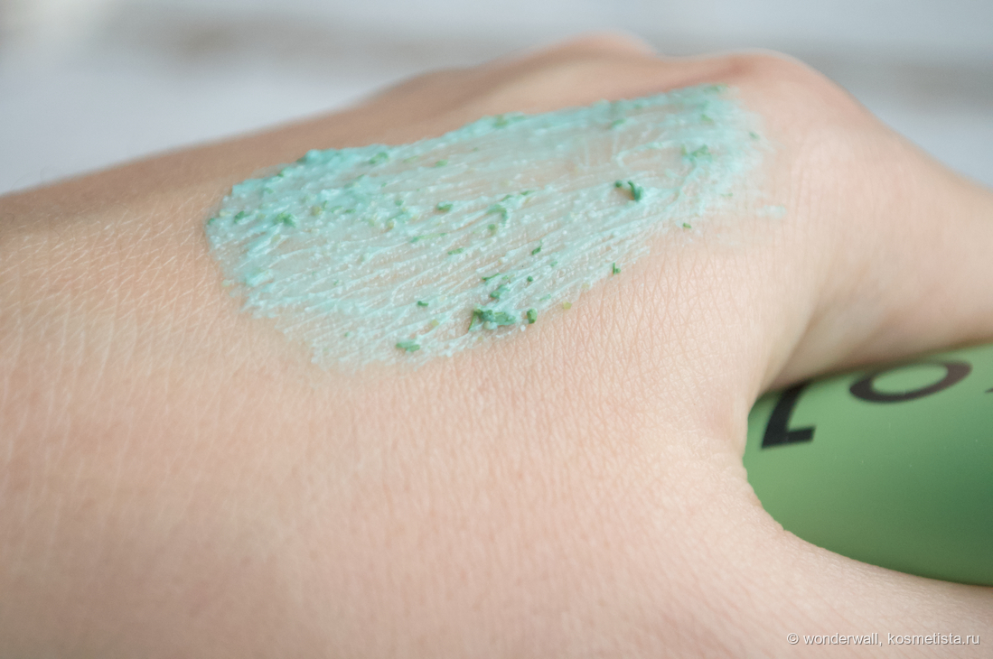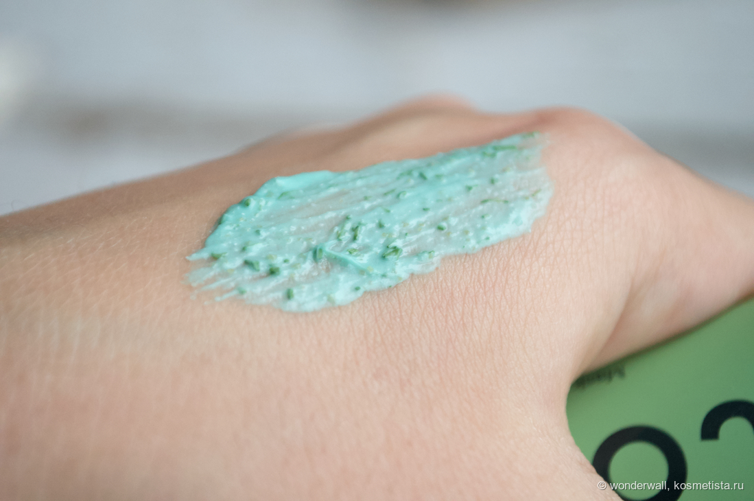 Текстура напоминает зубную пасту. В ней находится большое количество отшелушивающих частиц разной формы.