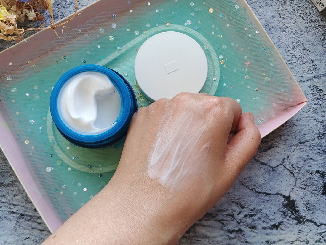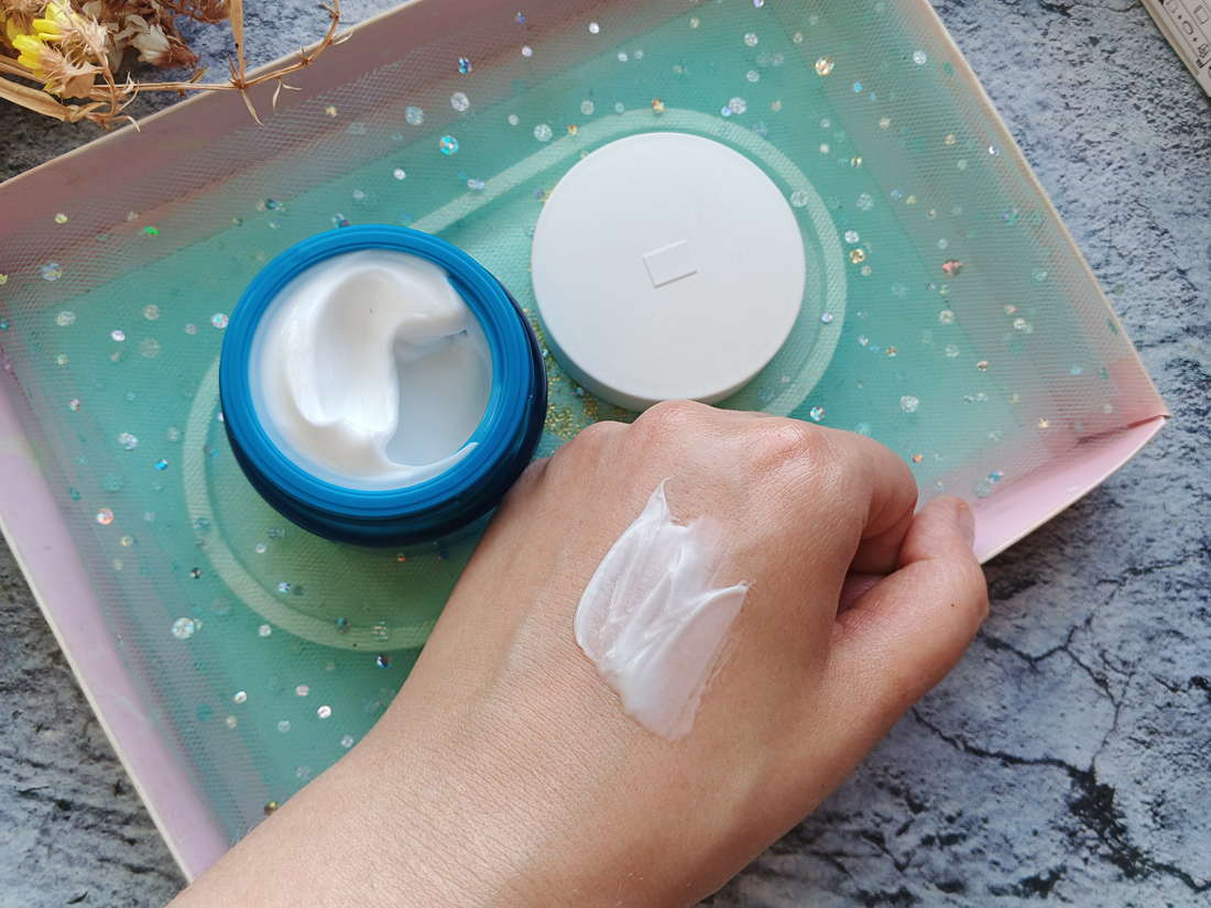Текстура у крема не слишком плотная, он в меру жирный. Распределяется без разводов, не скатывается и не оставляет липкости.