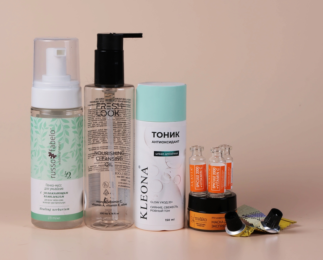В плюсе — 48 продуктов (4 теней, 4 туши, 9 помад, тени для бровей, 5 палеток теней, 10 румян, 4 карандаша для губ, 2 бронзера, 2 пудры, 2 блеска, 2 подводки, 1 праймер, 1 бальзамопомада, 1 бальзам).
