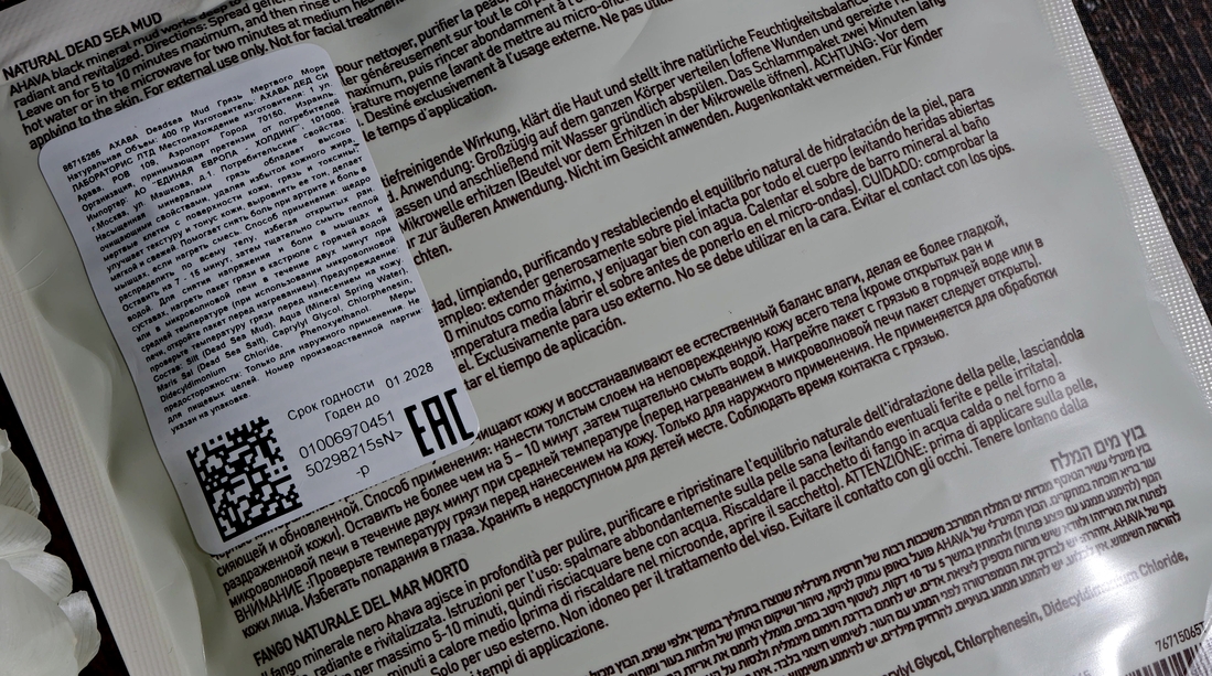 Пачка грязи Мертвого моря. Супер грязь! Мне очень понравилась. Делает кожу мягкой, бархатистой. Будет отдельный пост.