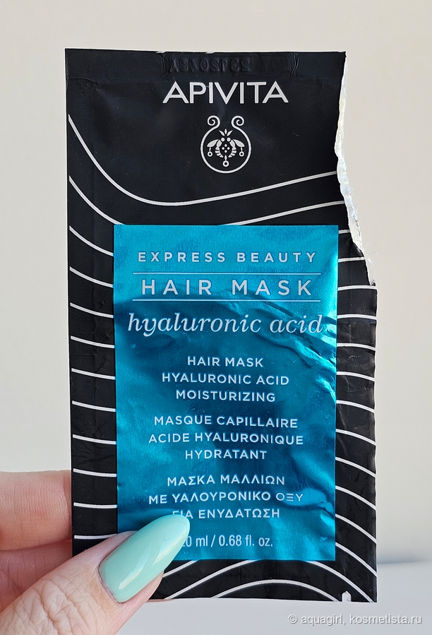 10. Apivita Hair Mask Hyaluronic Acid, 20 мл.