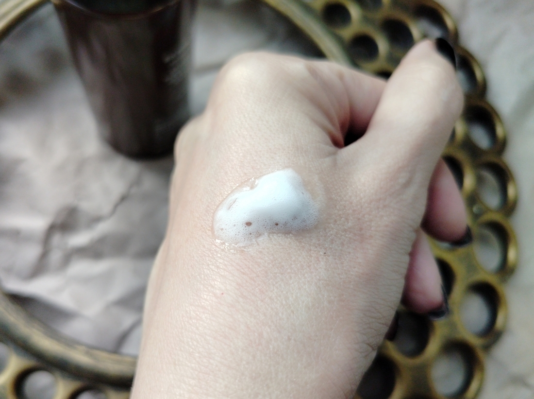 Наношу на очищенную сухую кожу, при соприкосновении с ней пенка мгновенно тает, становясь жидкой. Мягкими массажными движениям распределяю по коже, затем слегка похлопываю — так эссенция быстрее впитывается.