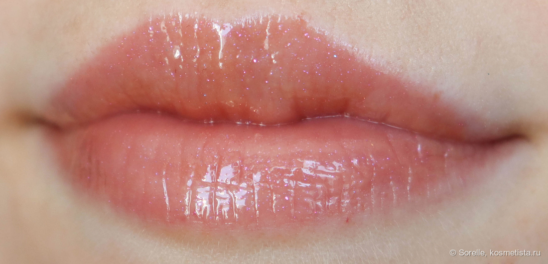 Стойкость с питьем и разговорами около 1,5 часов, потом блеск постепенно впитывается, на губах остаются блестки и небольшой глянец. А еще губы после блеска увлажненные и мягкие, уход тут тоже не подкачал.
