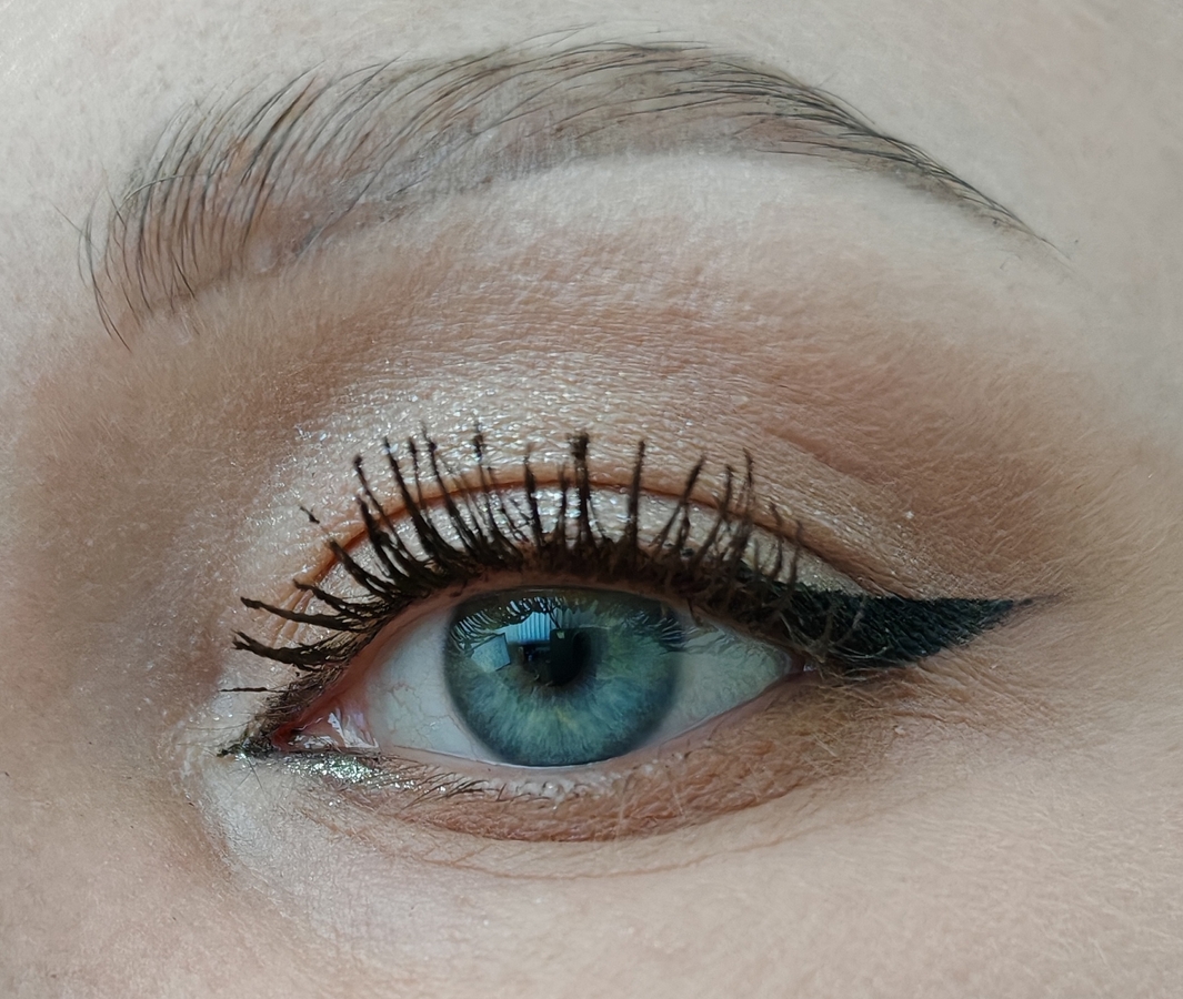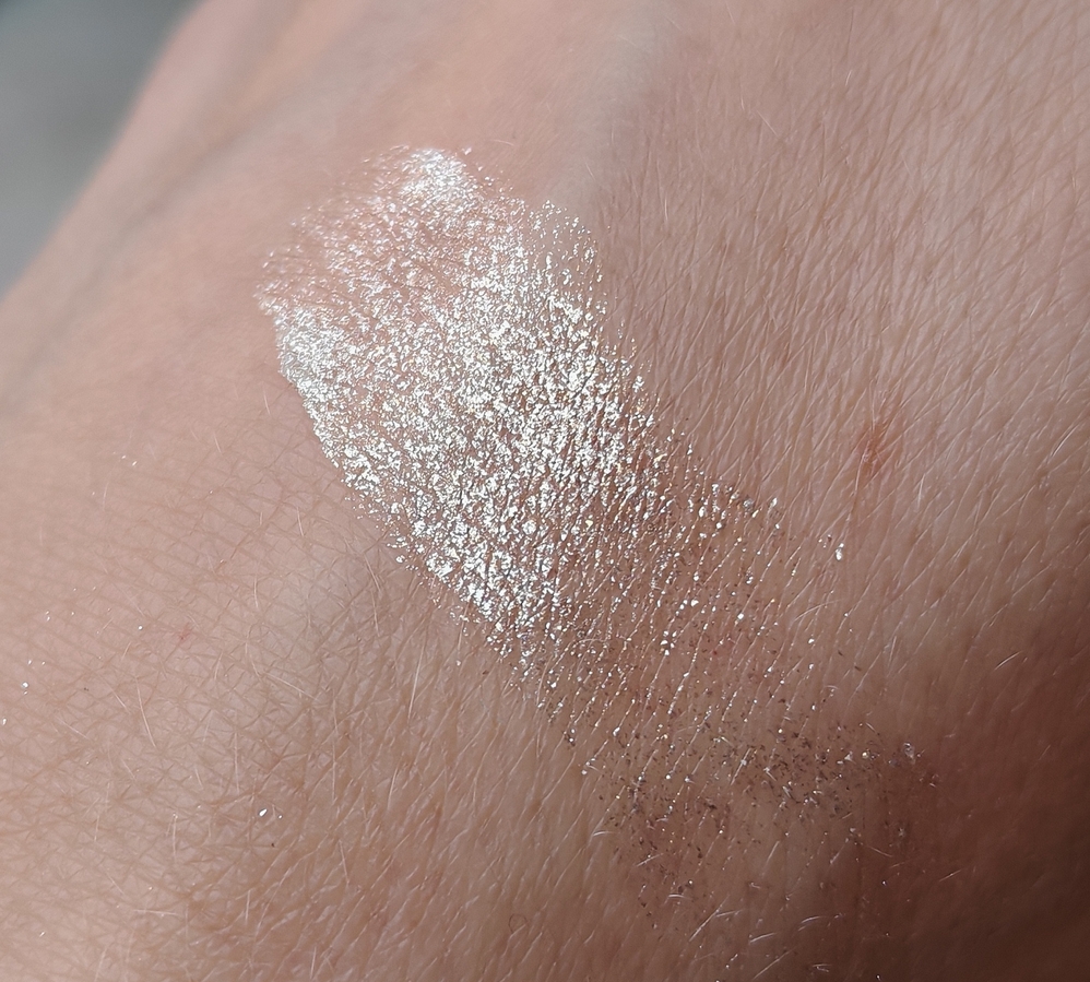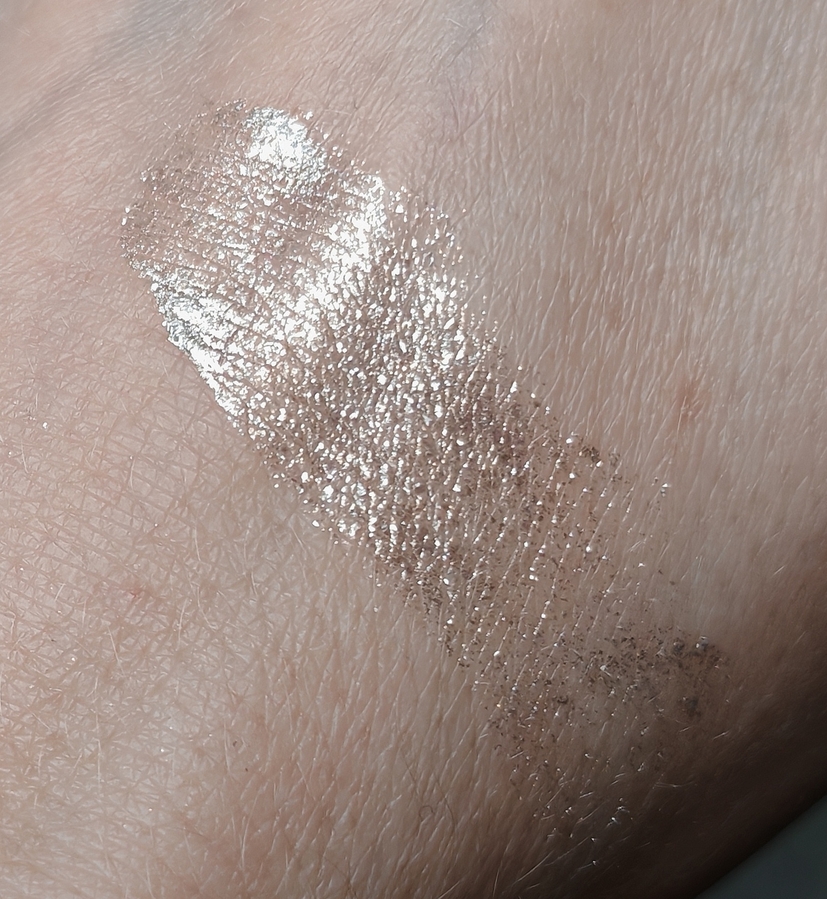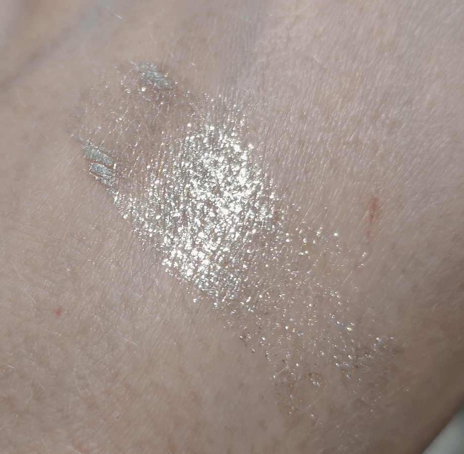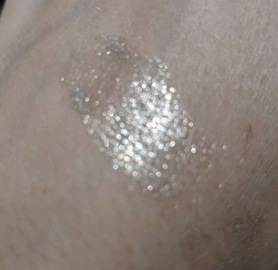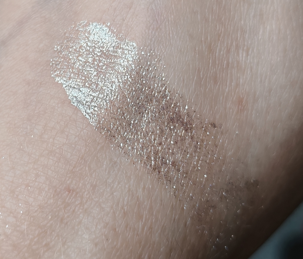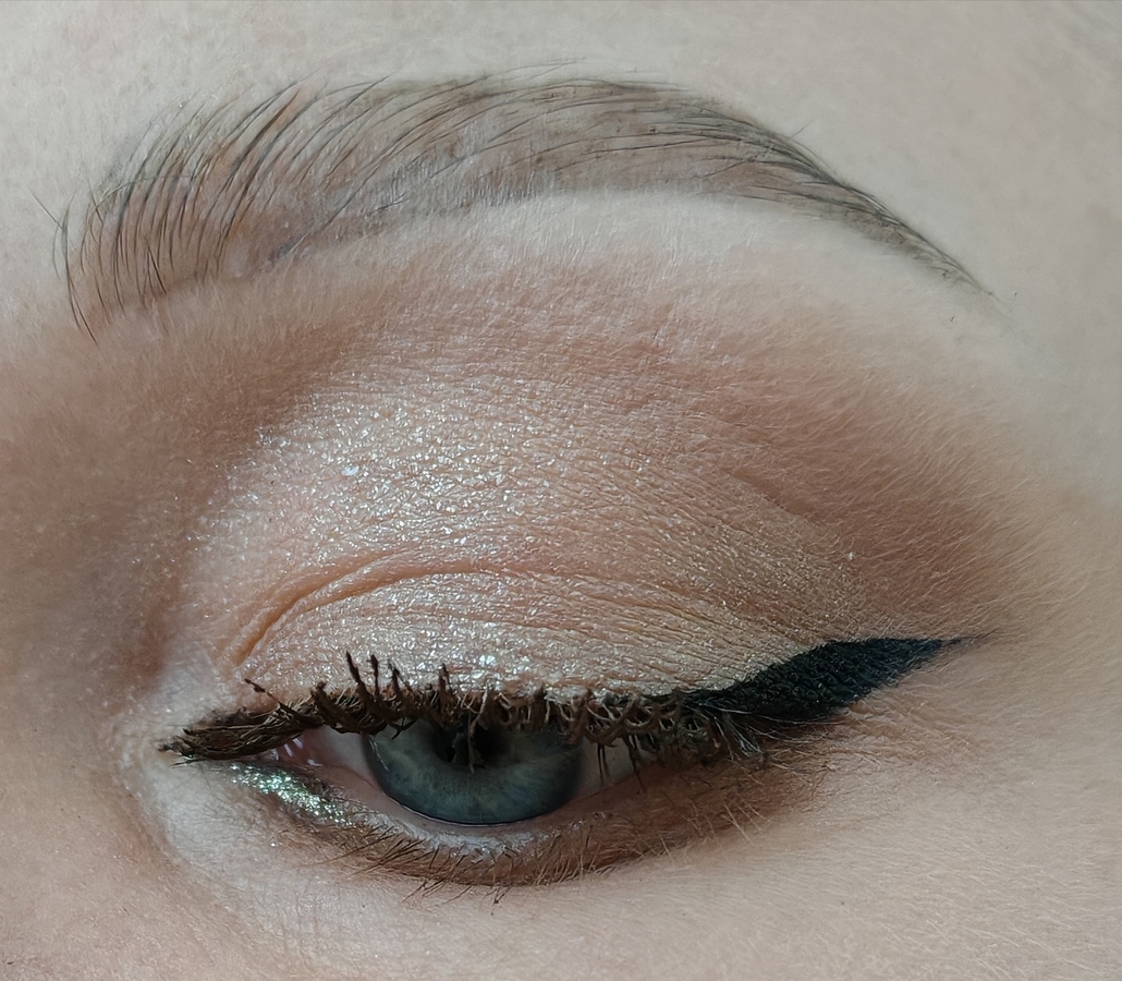 После нанесения продукт ощущается мокровато на веках, но он довольно быстро фиксируется. Блестки во время нанесения и носки не осыпаются.
