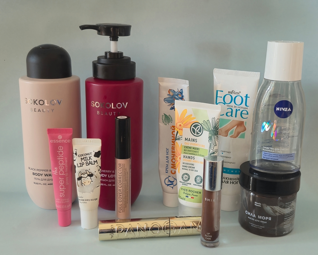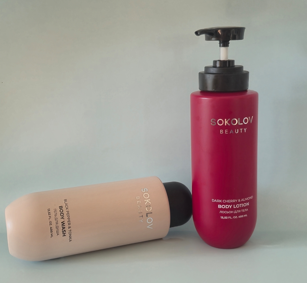 1. Средства для/после душа: гель для душа Sokolov beauty black pepper and tonka, лосьон для тела Sokolov beauty dark cherry and almond.