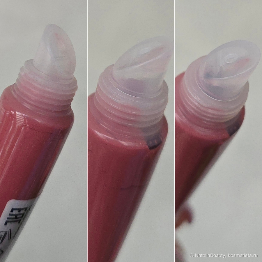 Аппликатор представляет собой пластиковый анатомический срез. Я не люблю такой формат упаковки, с обычным аппликатором цены бы не было этим блескам. Для меня это минус.