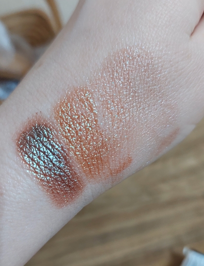 4-, честно, я не в восторге. Возможно как дополнение к макияжу, это и хорошо. Но называется это рассыпчатые тени. А использовать их без дополнительных средств затруднительно.