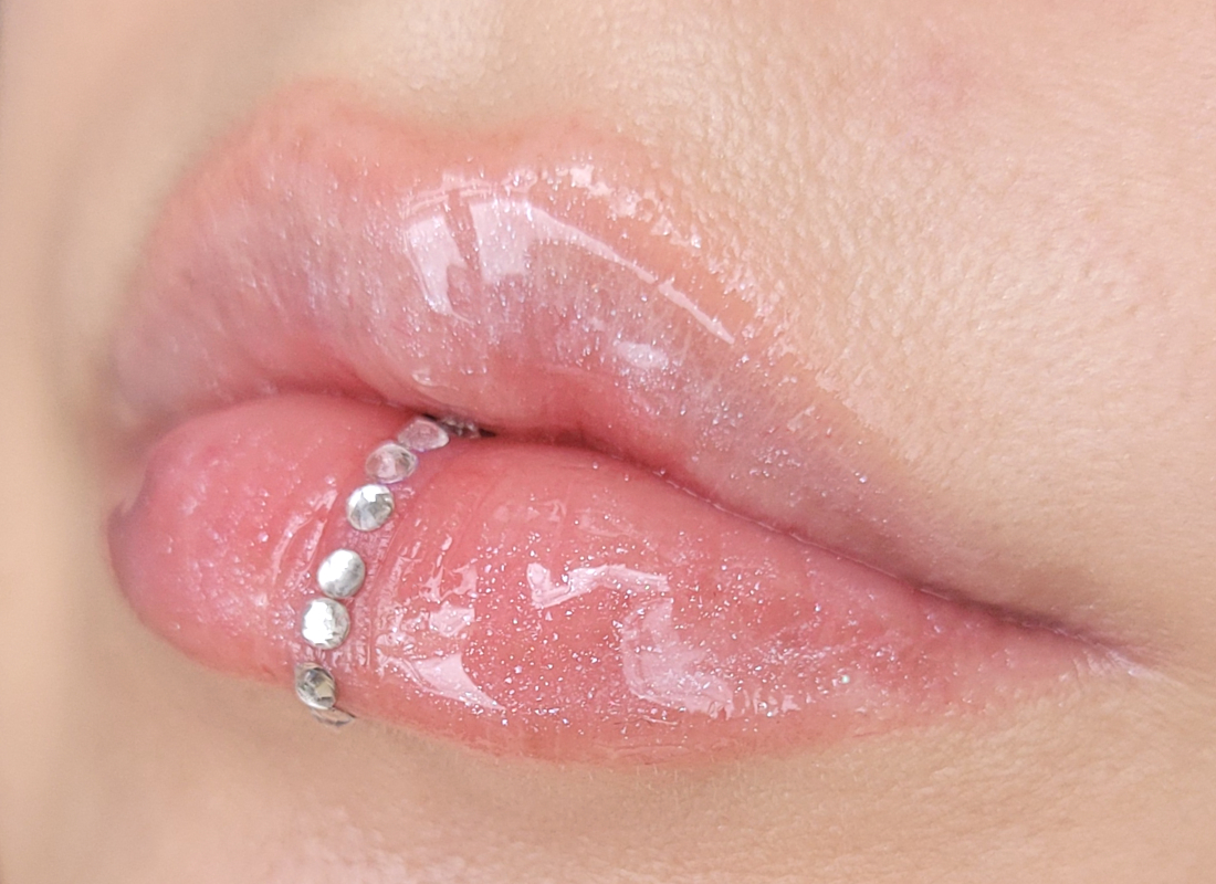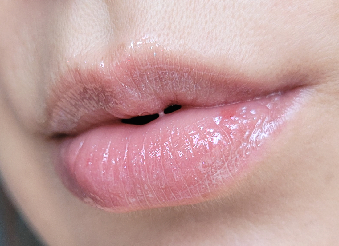 Также можно увидеть небольшую сопельку блеска на «клювике» верхней губы.